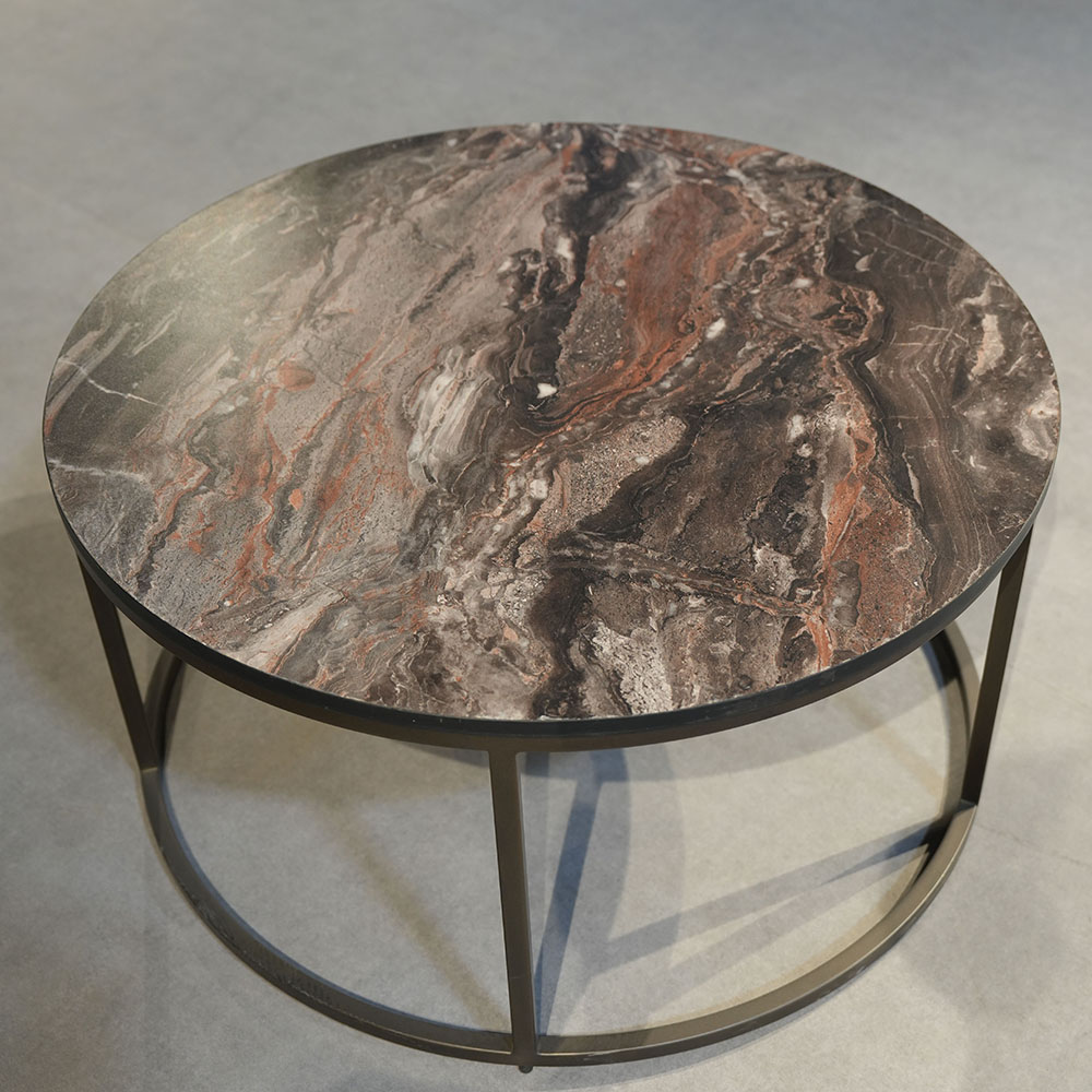 A sleek laminated round designer table with a smooth, modern finish. Perfect as a stylish centerpiece for living rooms, lounges, or office spaces.