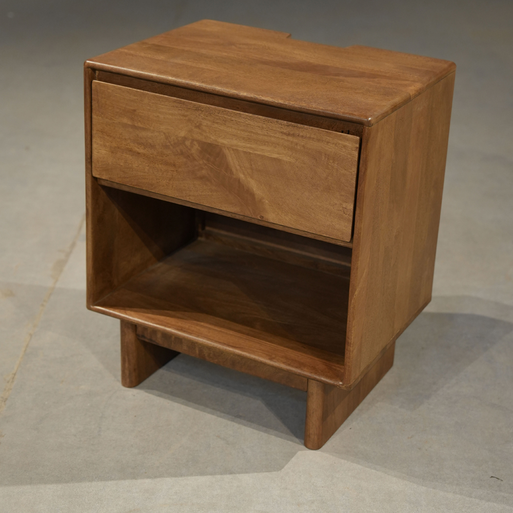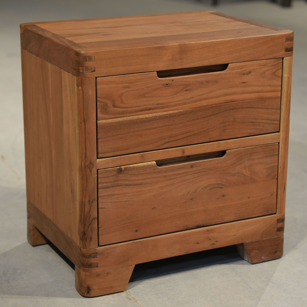 A premium solid wood bedside table with two spacious drawers — combining durability, convenience, and timeless design.